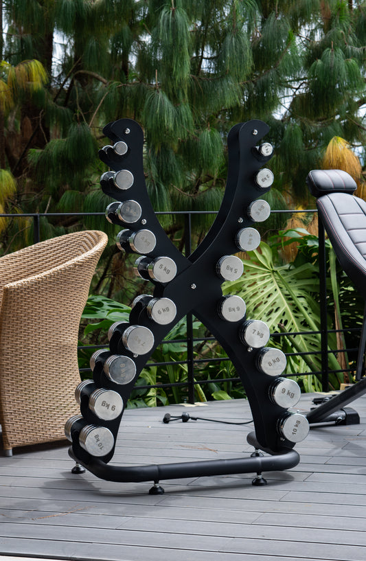 Combo Set de Mancuernas y Rack en X
